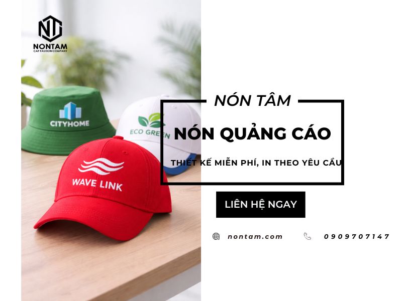 Với chi phí hợp lý, tính ứng dụng cao và khả năng in logo linh hoạt, nón quảng cáo đang trở thành một trong những vật phẩm marketing được nhiều doanh nghiệp lựa chọn. Nếu bạn đang tìm xưởng sản xuất nón quảng cáo chất lượng, giá sỉ tận xưởng và hỗ trợ thiết kế theo yêu cầu, Nón Tâm là đối tác đáng tin cậy để tham khảo và đặt hàng.