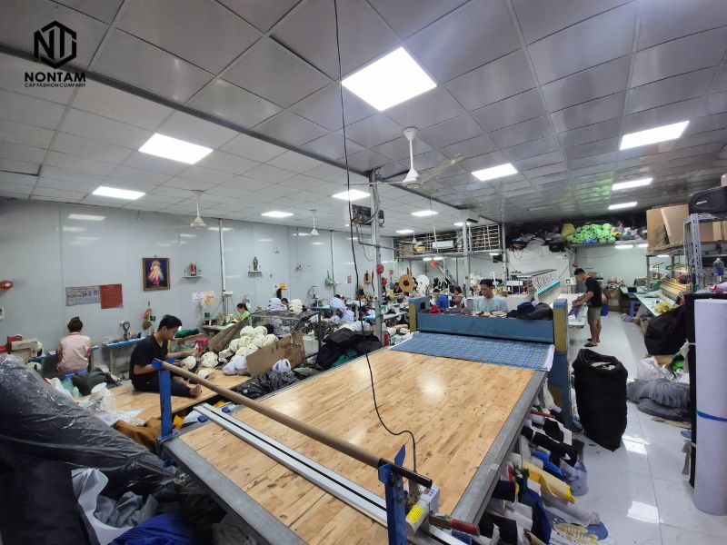 Để đảm bảo chất lượng sản phẩm, xưởng sử dụng các công nghệ in và thêu hiện đại trong quá trình sản xuất.