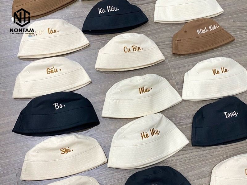 Khi đặt nón thêu theo yêu cầu, mẫu thêu tên cũng dễ triển khai trên nhiều kiểu nón khác nhau.